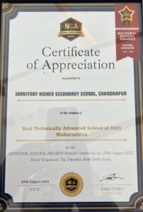 Montfort Higher secondary school, Ballarpur received National School Award 2023